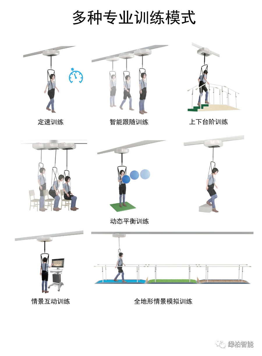 系統(tǒng)同時(shí)具備“跌倒保護(hù)”和“制動(dòng)保護(hù)”功能。解放了康復(fù)師的雙手的同時(shí),又建立了患者的安全感和訓(xùn)練激情。 此外,系統(tǒng)具有智能跟隨、上下臺(tái)階和動(dòng)態(tài)平衡等六種訓(xùn)練模式,滿足患者的多種日常情景訓(xùn)練,提高患者本體感覺輸入,實(shí)現(xiàn)真正獨(dú)立步行能力的恢復(fù)。 安全“防”“護(hù)”